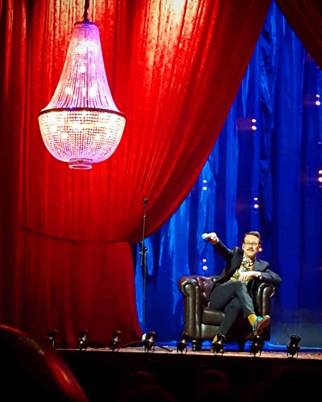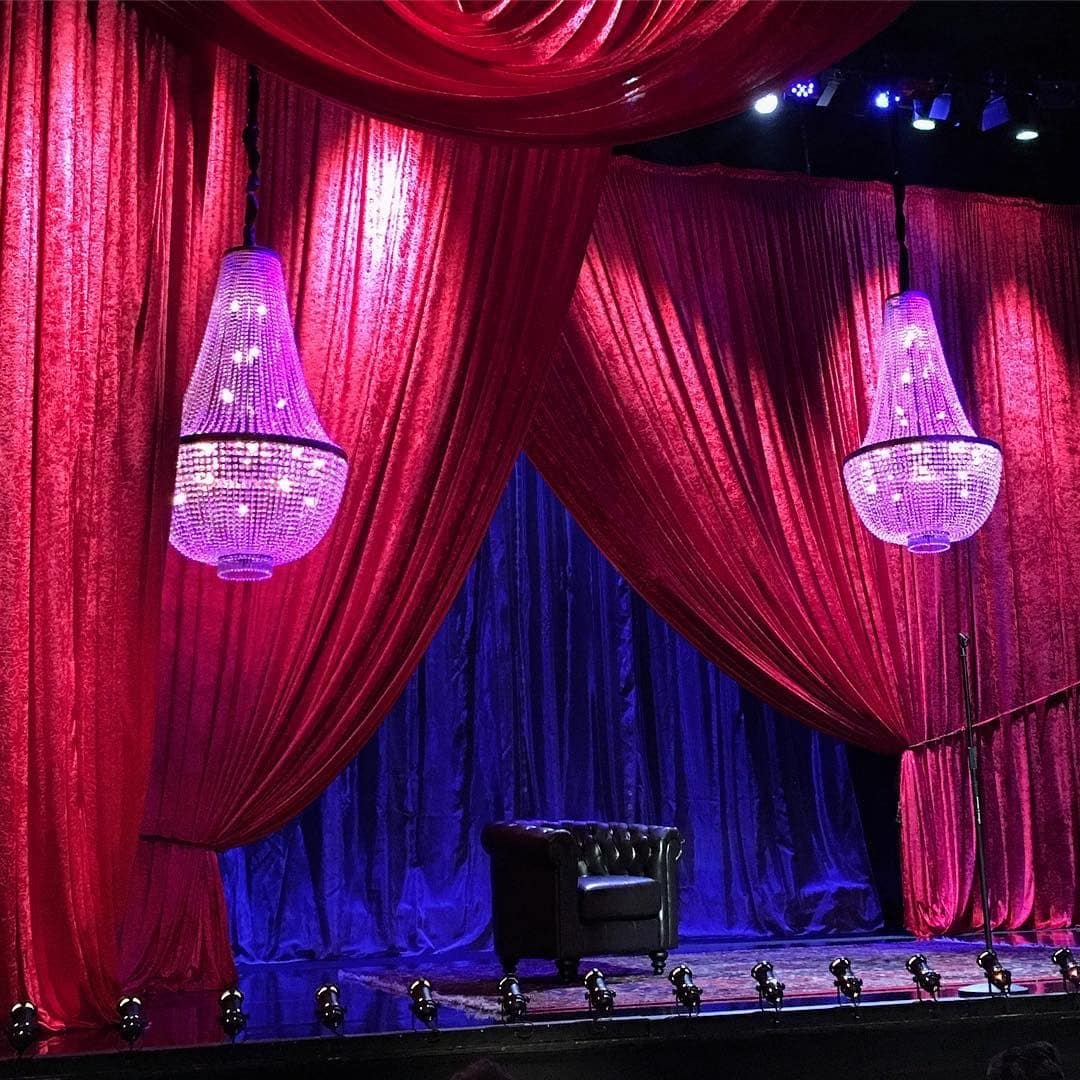 Kronleuchter schmücken Fernsehauftritte: Das Teatro La Latina in Madrid belieferten wir mit unseren Typ-3 Kronleuchtern. Die Kristall-Kronleuchter wurden in der Show Una y no mas des Komikers Joaquin Reyes verwendet. Für die Bühnendekoration brachten wir die Kronleuchter tief an. In Kombination mit den roten Vorhängen wurde eine warme, gemütliche Atmosphäre geschaffen. Der Auftritt wurde von Gobomedia aufgezeichnet und wird im Fernsehen übertragen werden.