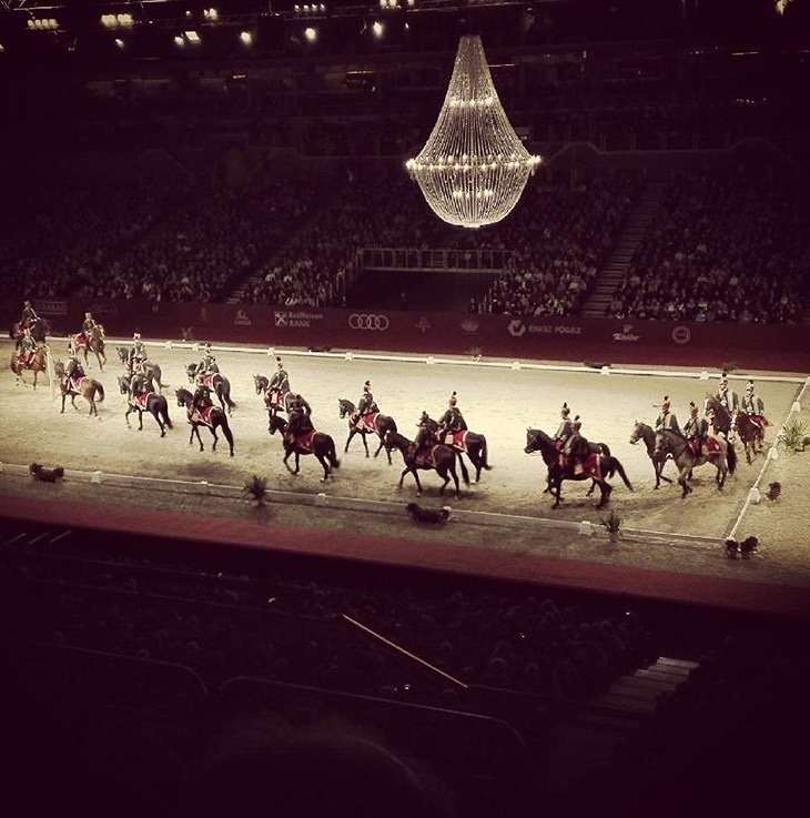 Kronleuchter Dekoration: Unsere Super-Size Kronleuchter während der exklusiven Show der Spanischen Hofreitschule aus Wien mit den weltberühmten Lipizzanern.  Die Papp László SportAréna Budapest war der Austragungsort für dieses exklusive Event. Die Lipizzaner Hofreitschule aus Wien veranstaltete zum ersten Mal in ihrer Karriere eine Show in Ungarn. Zu diesem besonderen Anlass brachten wir unsere großen Typ-6 Kronleuchter über der Reitbahn an. Hierbei arbeiteten wir im Auftrag von Lovas-Show Kft aus Budapest. Einen Tag später war der große Hingucker auch während des FEI World Cup Indoor Driving zu sehen. Wir reisten nach Ungarn und haben den Super-Size auf- und abgebaut. Sind Sie auch auf der Suche nach exklusiver und luxuriöser Stimmungs-Beleuchtung? Unsere Kristall-Kronleuchter sorgen für eine unvergessliche Atmosphäre. Schauen Sie sich unser gesamtes Sortiment an Luxus-Kronleuchtern an.